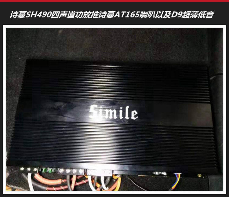 3、在座位底下安装诗蔓SH490四路功放,推前门喇叭和超薄低音