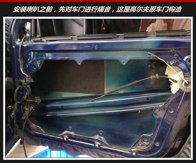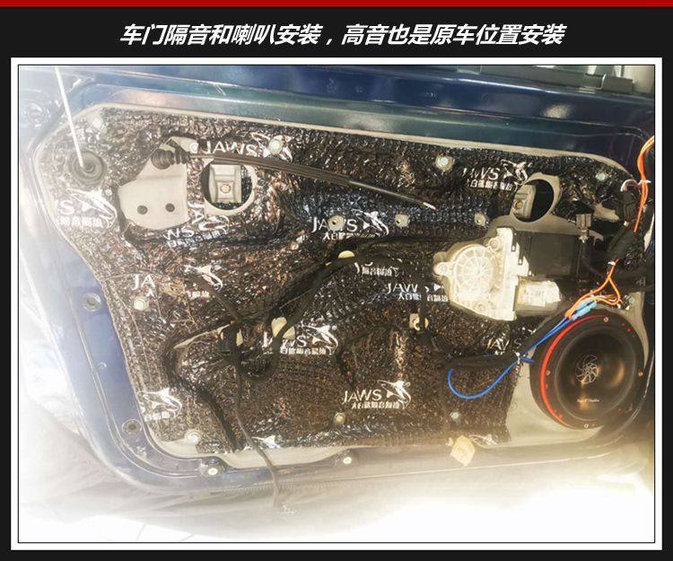2、安装喇叭之前,先对车门进行隔音处理;提升车门钣金扎实度、阻隔钣金共振噪音,隔音之后车门如同箱体,有利于提升喇叭音质效果。