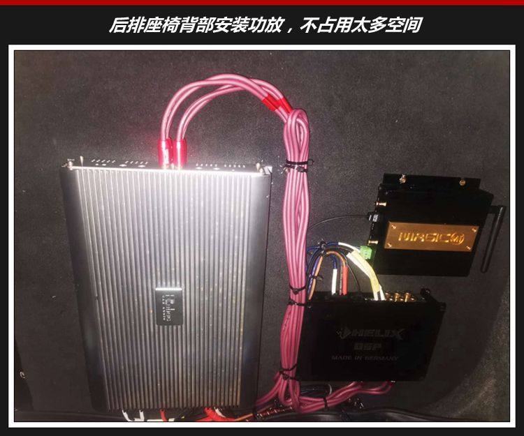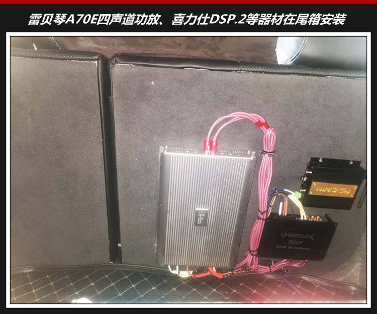 4、后排座椅背部安装雷贝琴A70E四路功放、喜力仕DSP.2音效处理器,以及魔立方BT-5蓝牙5.0模块