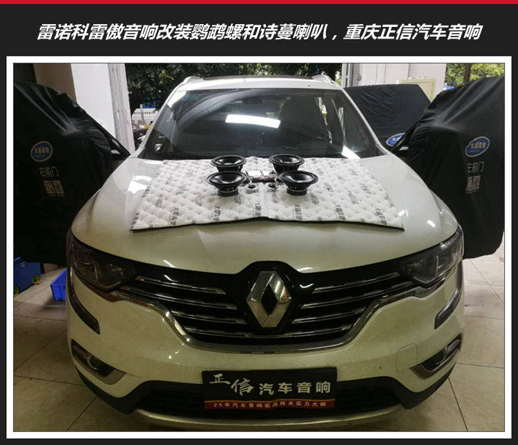 车型:雷诺科雷傲 前声场:魔立方鹦鹉螺N3.16S两分频套装 后声场:诗蔓AT165两分频套装 四门三层:大能蓝金刚+大能超级温莎 改装店家:重庆正信汽车音响改装 方案解析: 科雷傲升级的这两套喇叭的灵敏度都非常高,原车主机直接推效果就非常不错。 采用对位安装的工艺更换这两套喇叭,升级之后,高音更清晰、中低音则爽朗通透,在听人声音乐、流行音乐的时候表现非常不错。如果后期想要进一步提升音质效果,可以加装DSP,功放以及超低音单元,音质效果将会得到大幅度提升! 1、雷诺科雷傲升级的两套高性价比喇叭:
