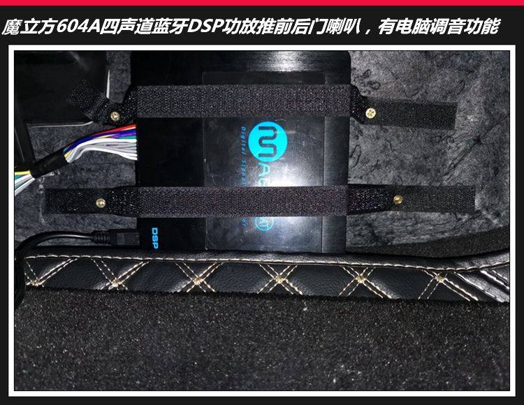 后门喇叭同轴喇叭对位安装;魔立方DSP功放在座位底下安装,节省更多空间;它里边有散热装置,因此不必担心散热问题。