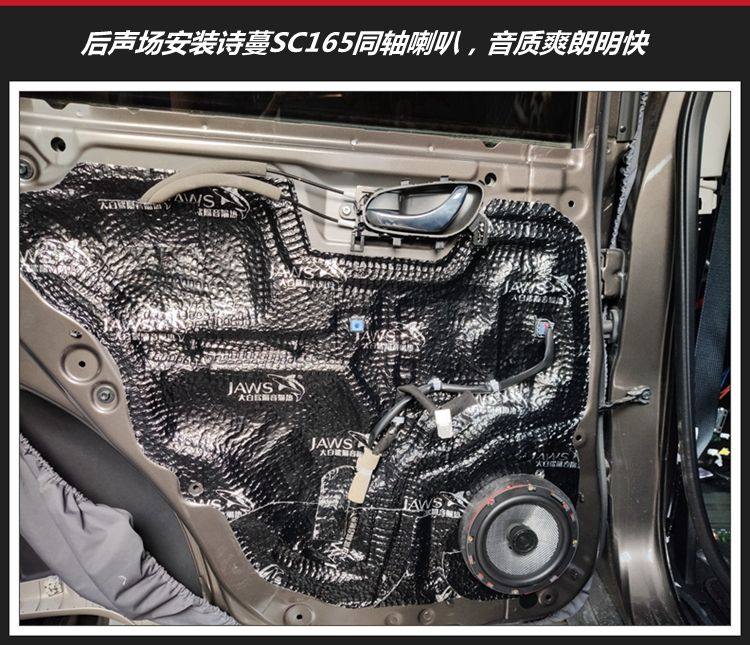 5、后门安装诗蔓SC165同轴喇叭,它的高音和中低音在同一轴线上,声音爽朗悦耳。