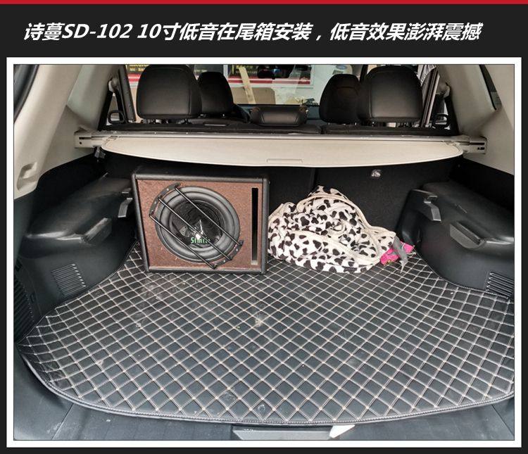 7、诗蔓SD-102超低音单元安装效果图,低频震撼有力,颗粒饱满的低音效果打到前挡风玻璃下方,声音效果变得十分丰满立体。