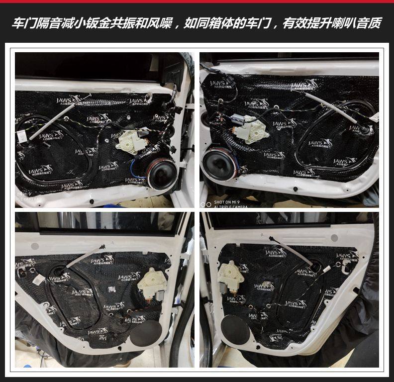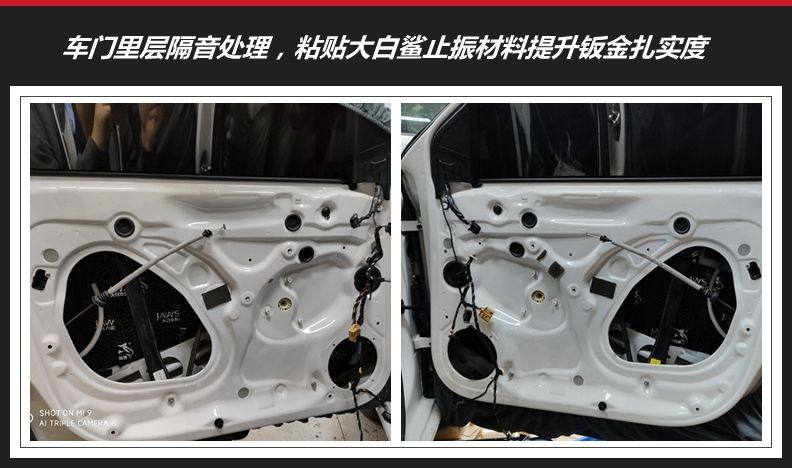 车门隔音解决方案: 四门三层:大白鲨减震+大白鲨吸音棉