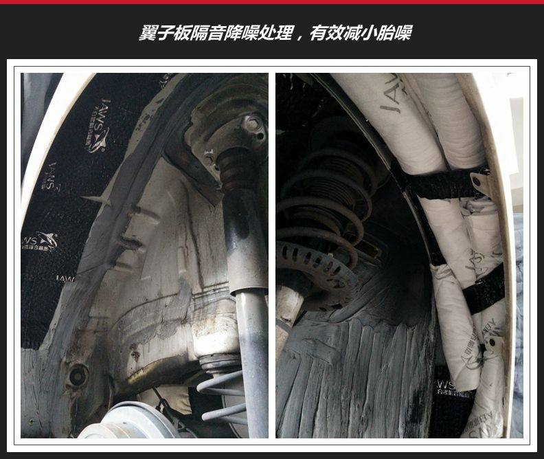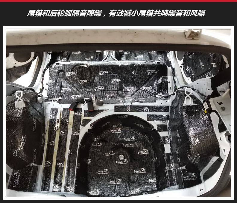 尾箱和后轮弧隔音降噪处理,来自尾箱的共鸣噪音、胎噪、避震器传递的共振噪音都得到削减。