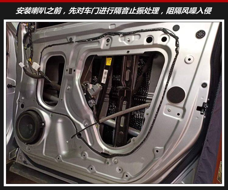 车门双层隔音之后,风噪明显变小,密封的车门为喇叭提供良好的工作环境。
