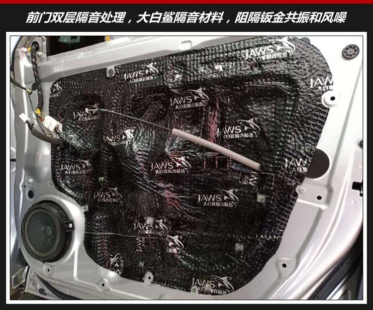 前后门钣金双层隔音处理,粘贴大白鲨隔音止振材料