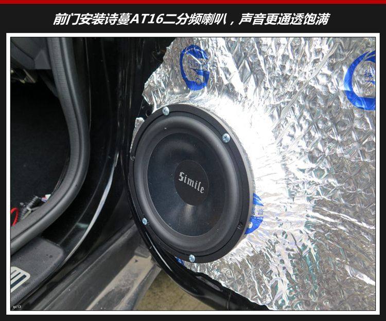 3、前声场喇叭安装,对位升级诗蔓AT165两分频套装喇叭,它的声音通透饱满,细节还原真实。