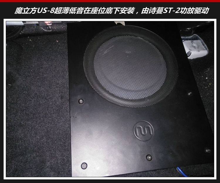 5、魔立方US-8超薄低音在座位底下安装,独立功放驱动,低频深邃有力。