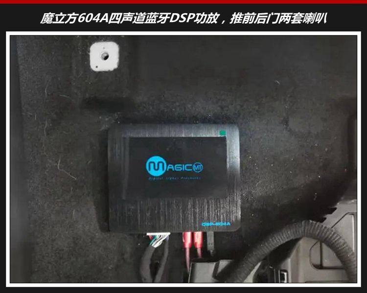6、魔立方604A DSP功放在座位底下安装,推前后声场两套喇叭,内置音效处理,电脑调音使得音响拥有360°立体环绕效果。