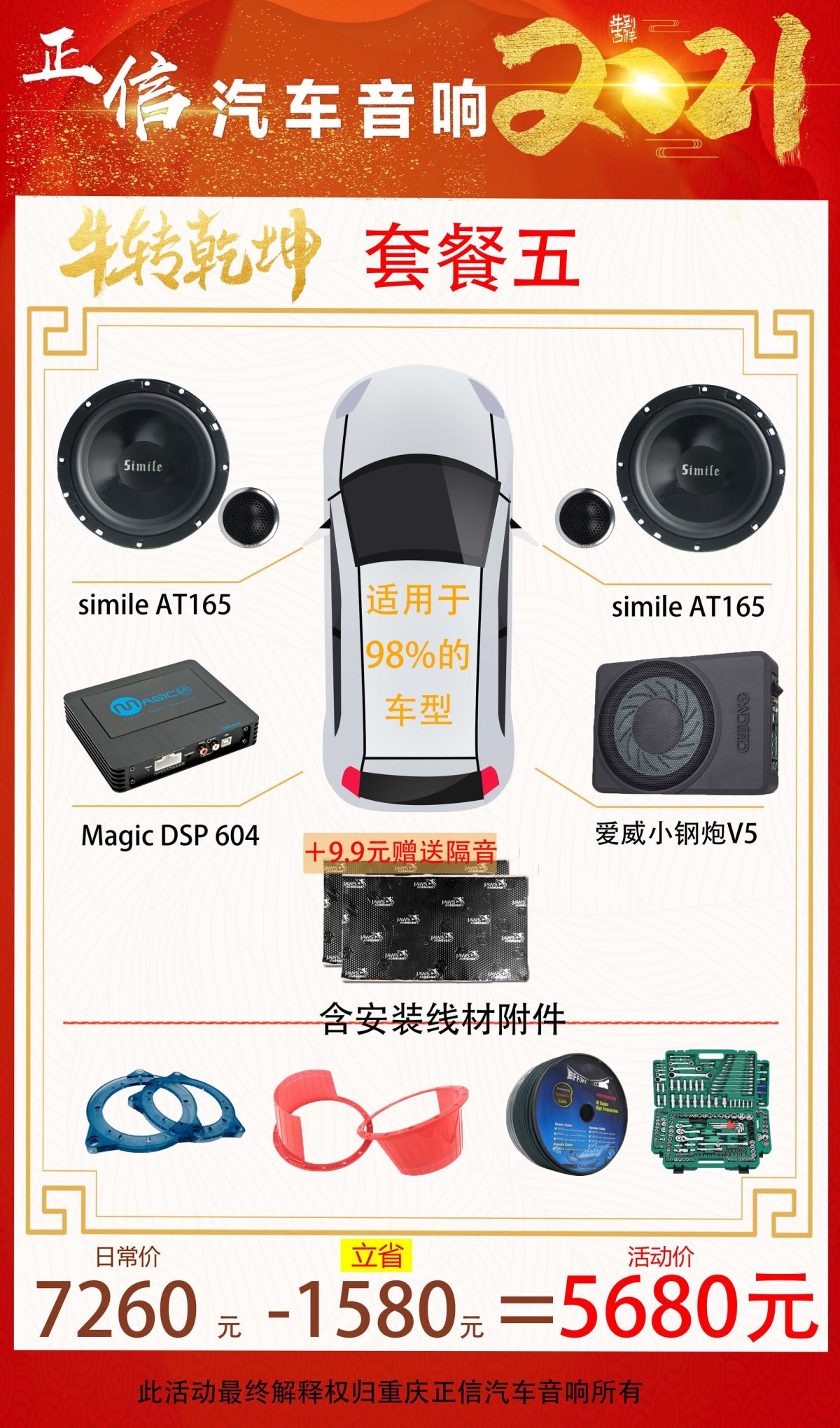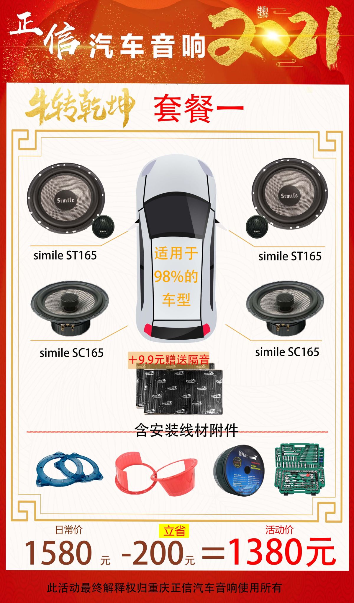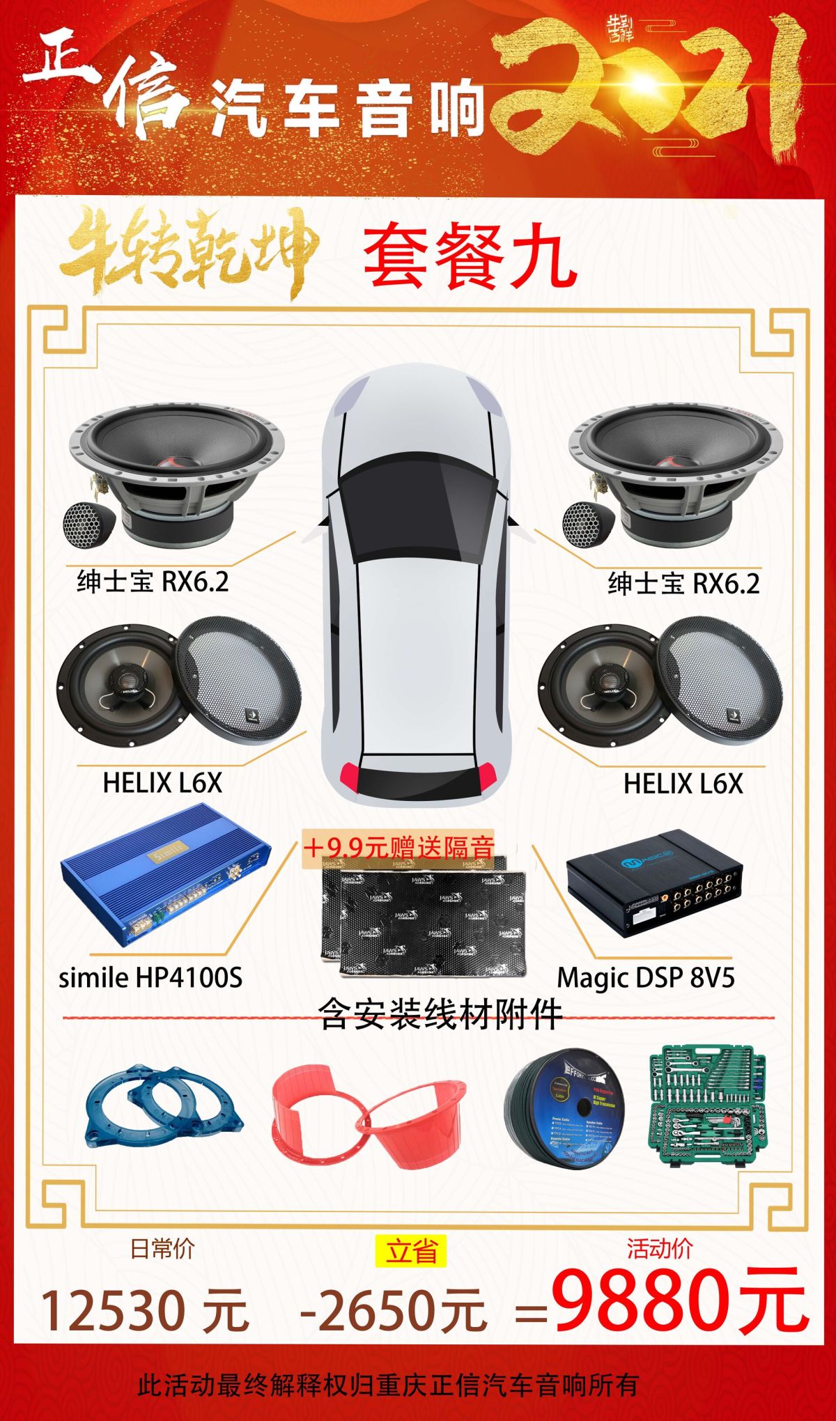 重庆正信汽车音响隔音降噪2021牛年大吉万元内音响套餐