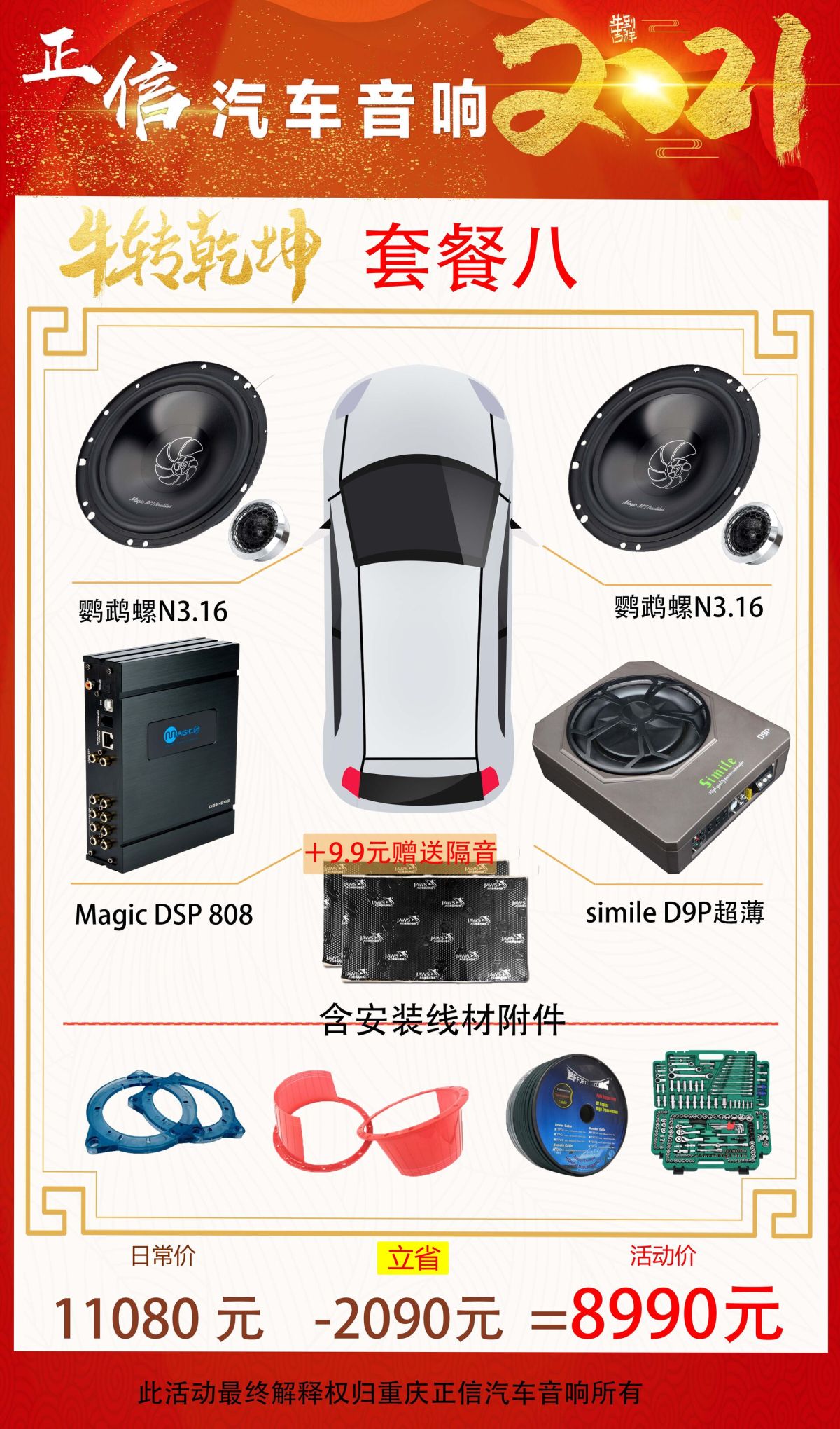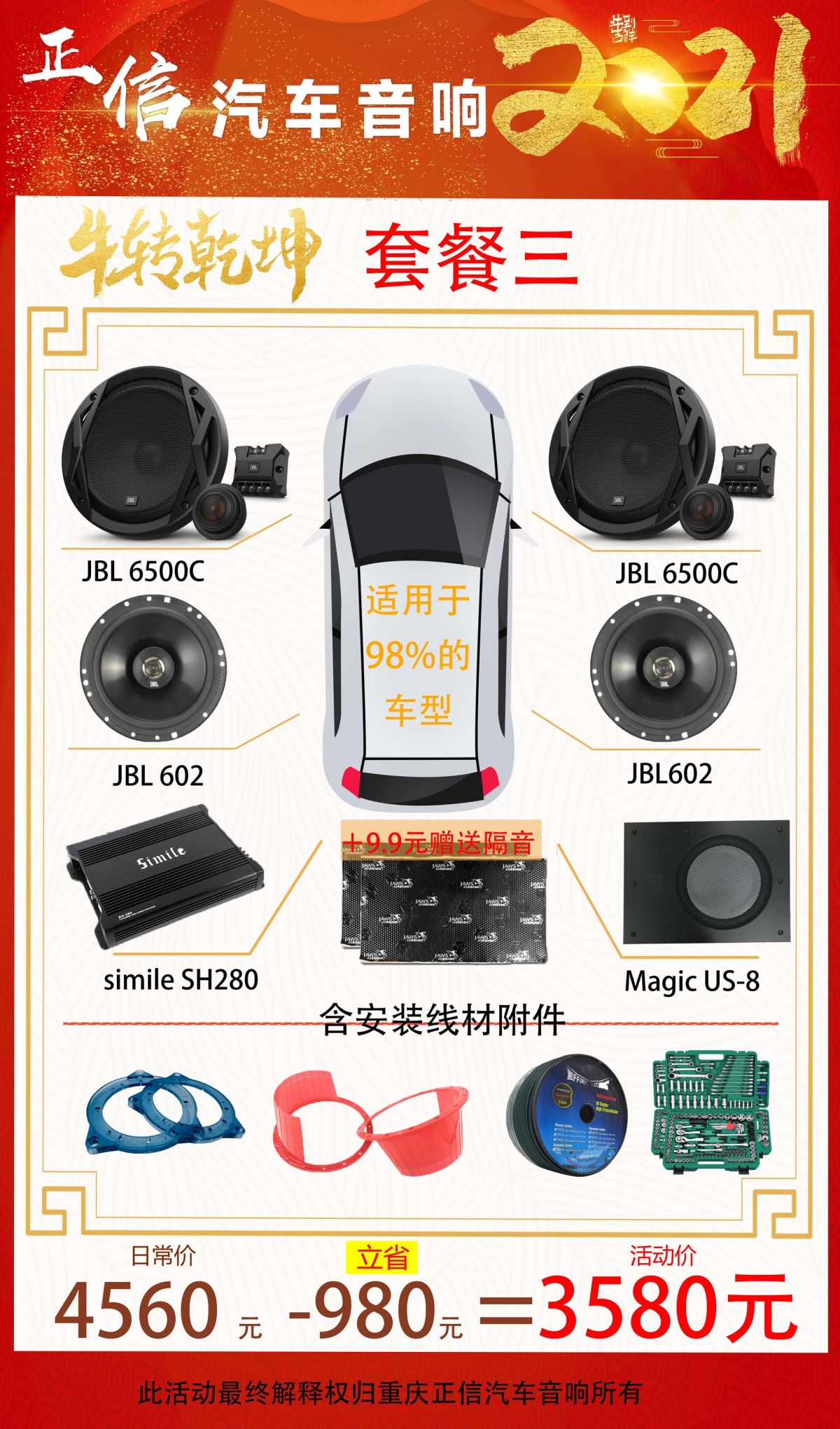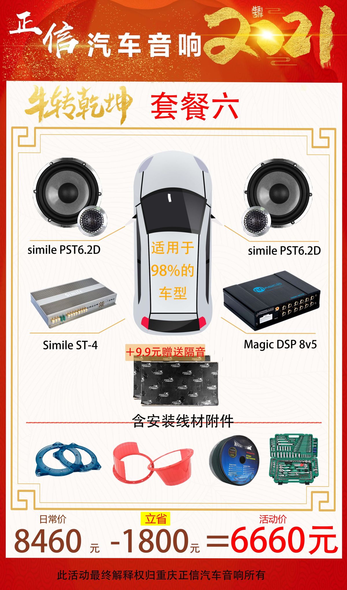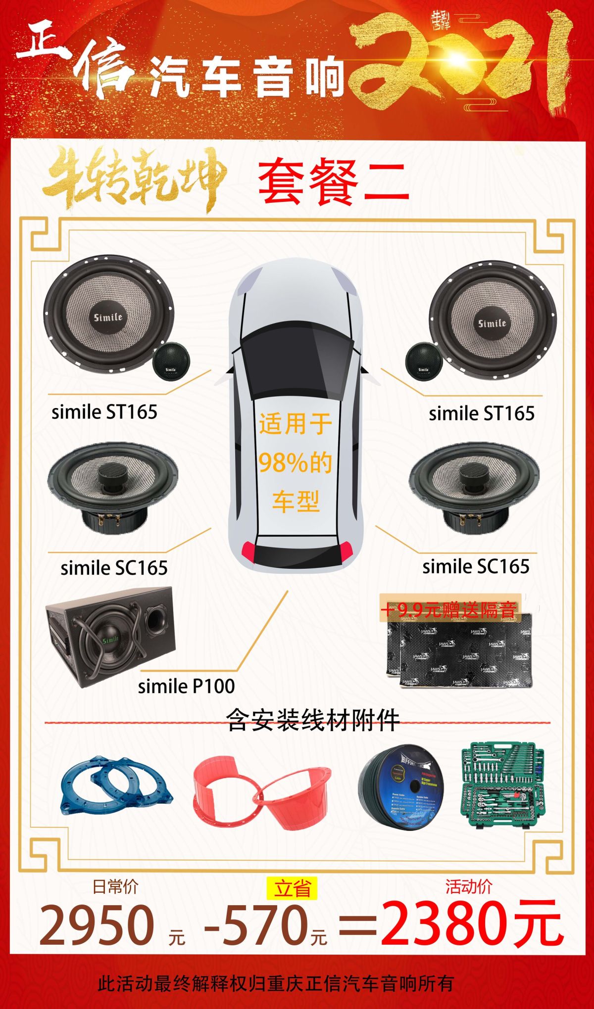 重庆正信汽车音响隔音降噪2021牛年大吉万元内音响套餐